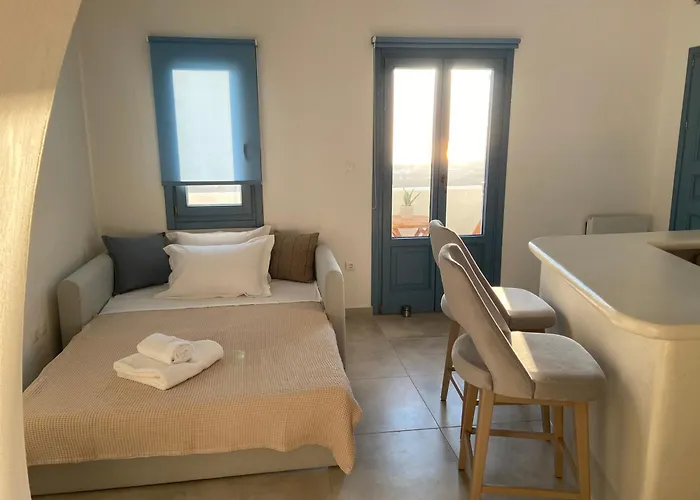 Ena Suites Santorini, ücretsiz otopark, antialerjik odalar, güneş terası içeren konaklama imkanı sunmakta ve Santorini Arkeoloji Müzesi'a 6 km uzaklıktadır. Villa Perissa Plajı'a 2 km uzaklıktadır.